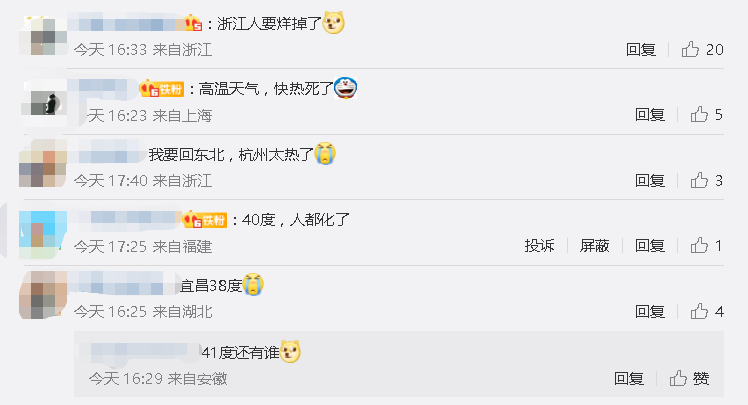 也紛紛說出了自己城市所處的高溫