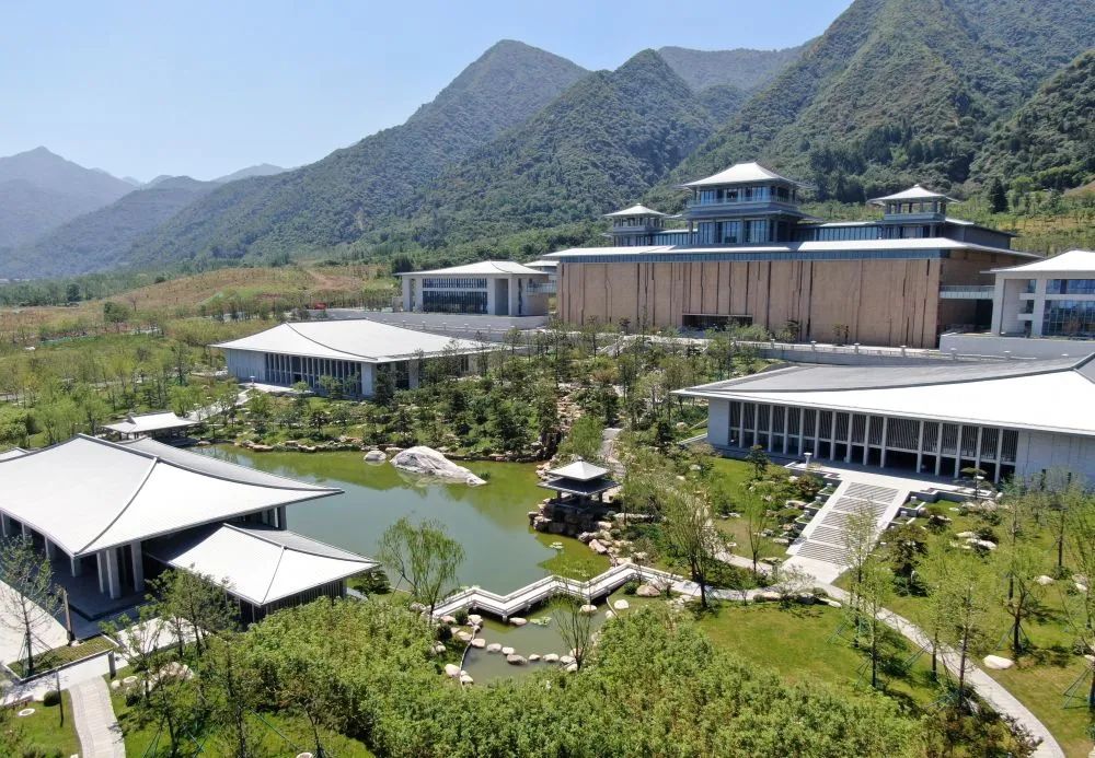 南倚秦嶺,北望渭川,總建築面積8.25萬平方米的中國國家版本館西安分館(文濟閣)同日在西安正式落成。它的主體為高台建築,呈現出大氣磅礴的漢唐風格。預計開館初期可征集到版本資源209萬冊(件)、數字資源160TB。